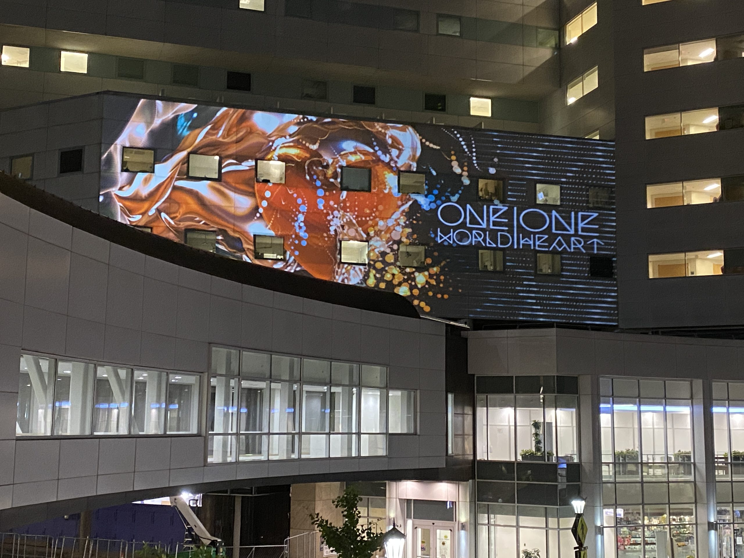“46 artists // 5 continents // 9 cities around the world that projected the artworks. The International Solidarity Campaign “One World. One Heart”. “The theme of this awareness campaign is ”One World. One Heart.”, reinforced by the hashtags #staybrave – a tribute to the front line heroes in the battle against the coronavirus, who put themselves at risk every single day // #strongertogether – a message to all the people that stay home in order to save many others // #lovecandoanything – a representation of how art is capable of showing the noblest feelings.”