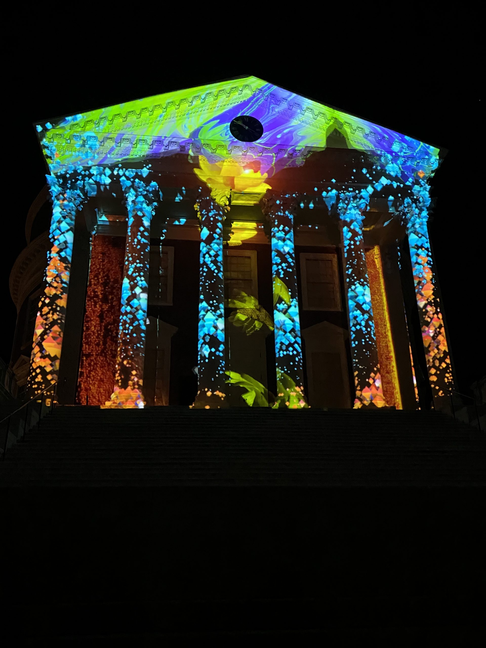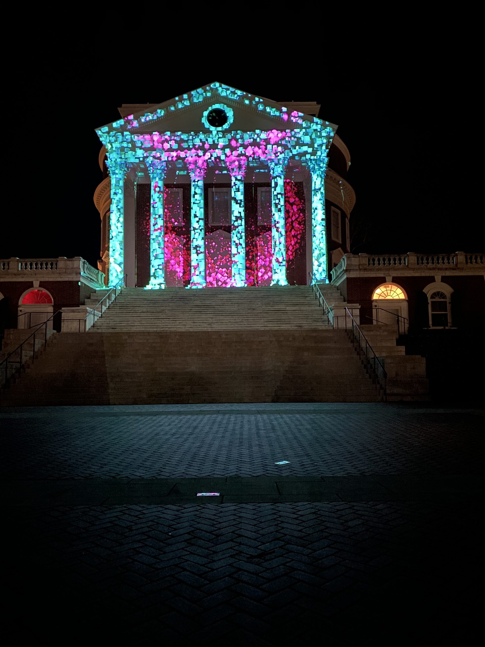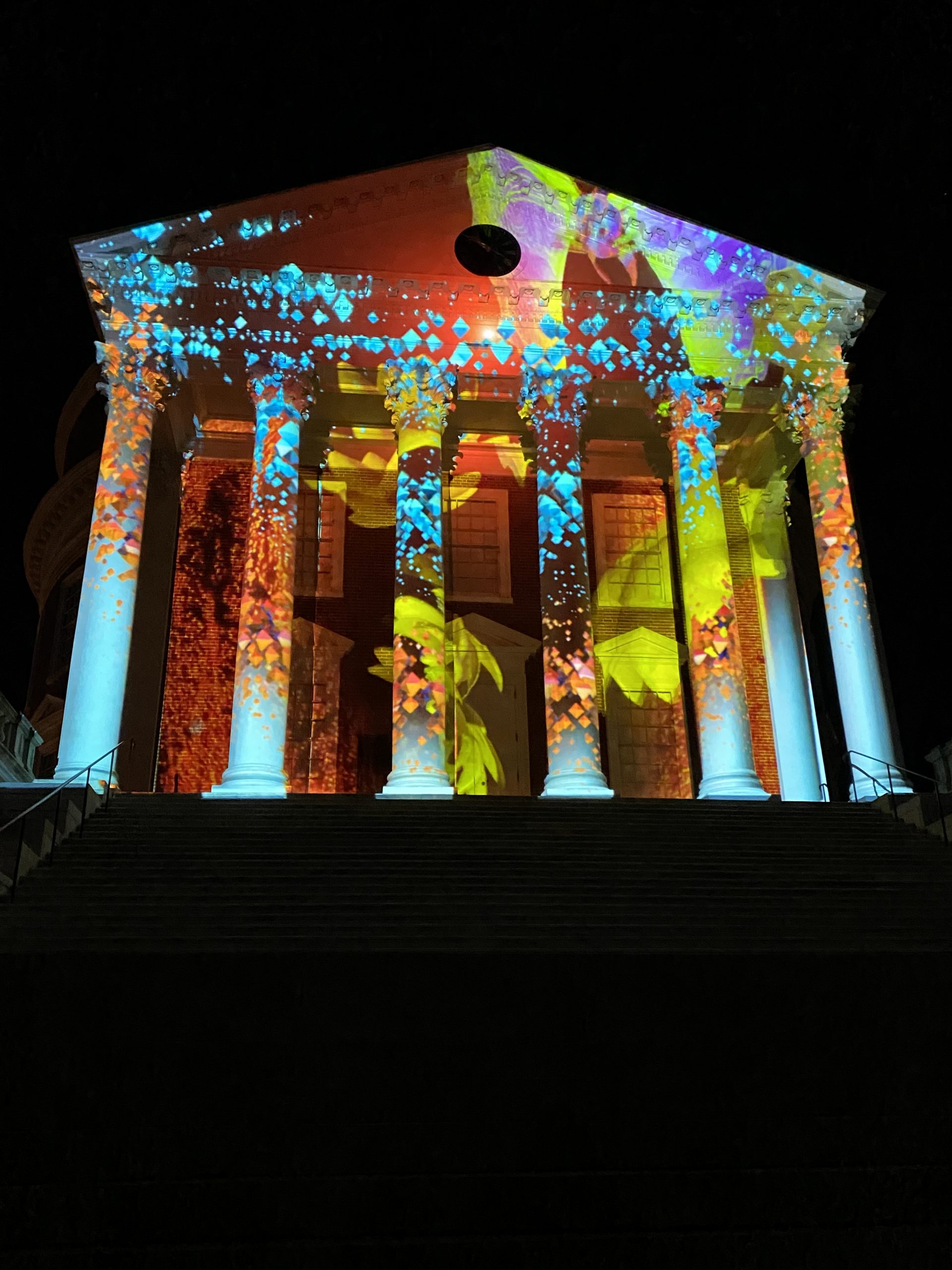 Brighter Together is an UVA arts initiative designed to provide engaging, artful experiences while still respecting COVID guidelines. Projection mapping provided an amazing way to engage at a distance while still experiencing something impactful. 5 prominent campus buildings including the Unesco Heritage Site of The Rotunda were mapped with art over a 3 month period. Brighter Together was presented by UVA Arts, the Office of the Provost and Vice Provost for the Arts, and the Division of Student Affairs and The AV Company and featured the art and mapping of Jeff Dobrow with the gracious help of Epson projection.
