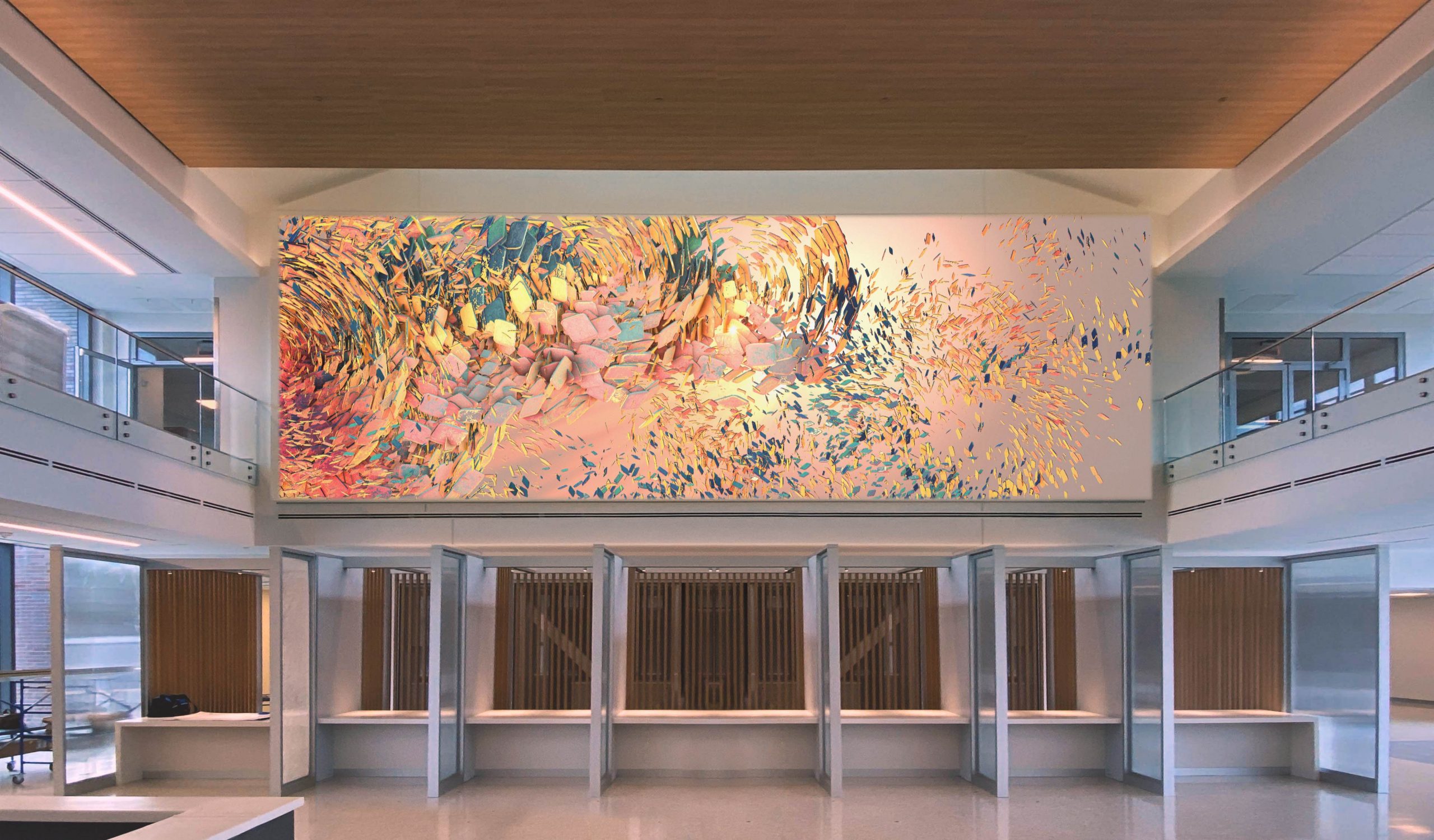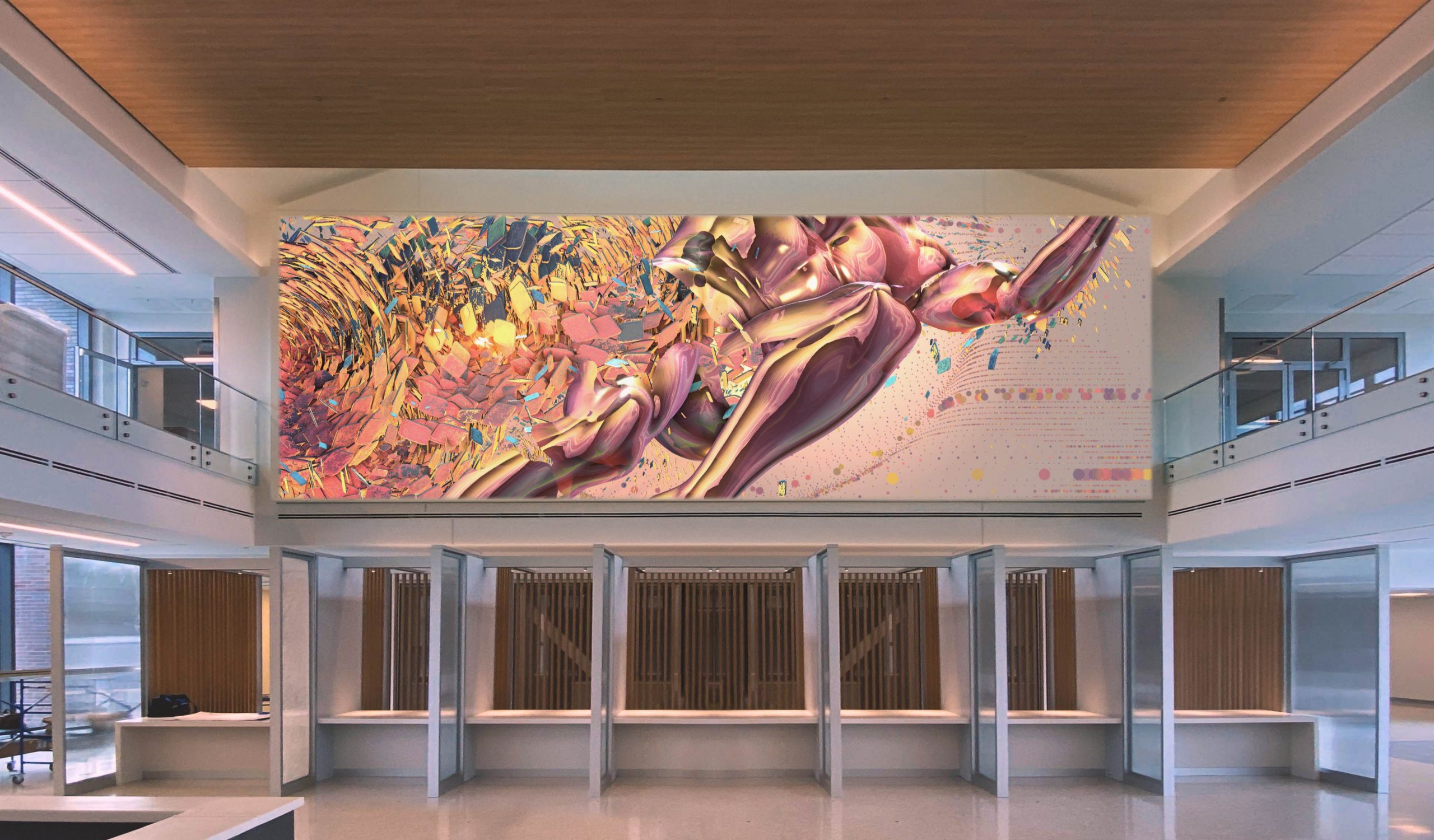 UVA reached out for projection consultation and an art proposal in 2021. The project involved site assessment and projection selection to provide the proper presentation for art and other impactful content. Two Epson 30,000-lumen units will be installed and blended to create the vibrant lobby canvas.