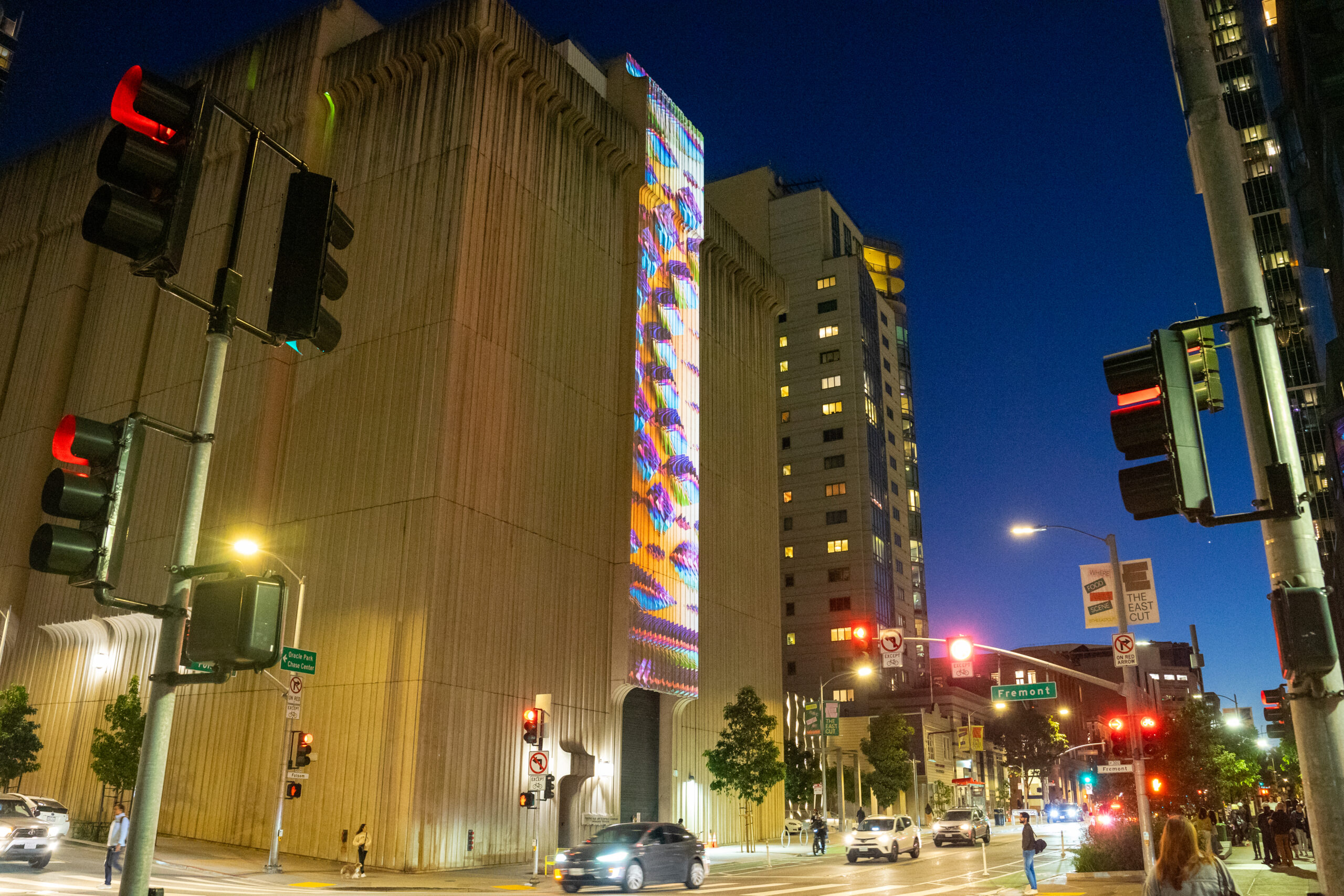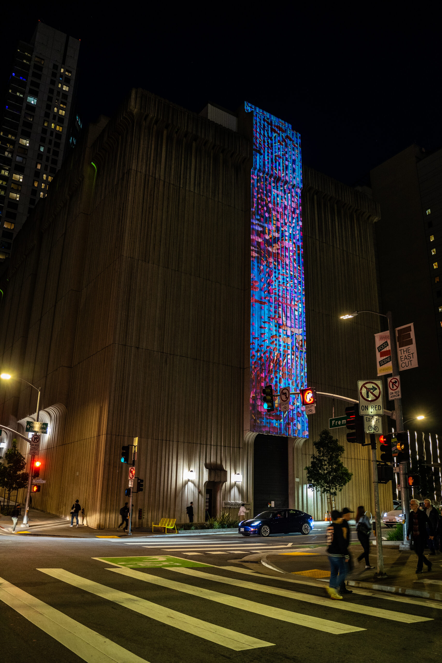 Many months in the works for myself, and years in the making for some at A3 Visual and The East Cut Community Benefit District; East Cut Electric went live this month as San Francisco’s first permanent projection art installation on the beautiful, brutalist PG&E Embarcadero Substation in The East Cut District.