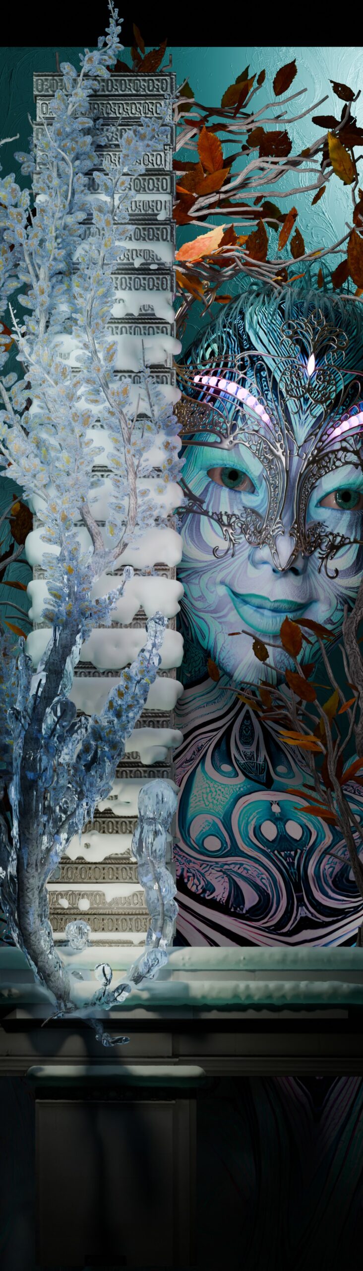 Winter’s cold, stoic surface hides and harbors so much, as in this time nature is planning and preparing its grand spectacle for us. And beneath this cold, dim facade the Qxeen of Seasons awakens to playfully bring our seasons into being. Her manifestations and glee explore Winter from a perspective of magic, color, growth and discovery, while being inspired musically by “Microworlds” from French Composer & Producer CloZee.